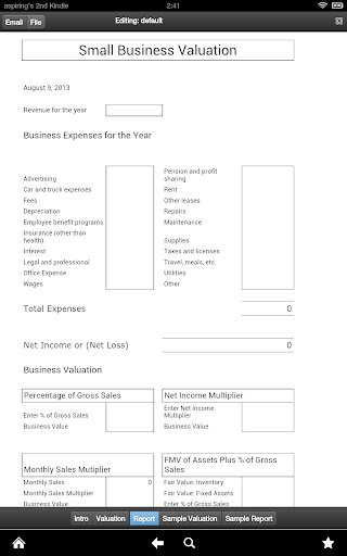 Locally save your business valuations as a file, and re-use it with minimal changes. Simply tap e-mail to send the file to your business partners, investors and other stakeholders instantly and get feedback from them. Alternatively, you can email them to yourself.