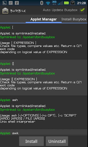 Please note I did not write BusyBox! I wrote this installer and cross compiled BusyBox for Android. Please see the about menu option for more details or here: www.BusyBox.net