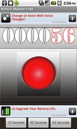 Since the 80's arcade games have been associated with the hated and loved technique of button mashing. Now you can button mash all you want on your phone! Just select a time interval and mash away as fast as you can! Can you beat the developer's ten second Hi-Score of 122 Mashes in 10 seconds? Can you become the ultimate button masher!?