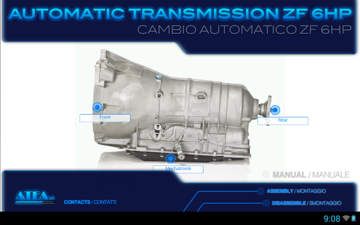 C@R TOOLS ZF6HP allows you to disassemble and explore an automatic transmission ZF 6HP model . It is the opportunity to see how it is made one of the most widespread automatic transmissions in the Automotive field of the following trademarks AUDI, BMW, Rover, Jaguar, Citroen, VW.