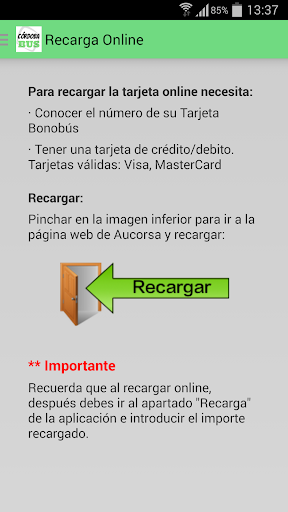 Con esta aplicación podrás controlar lo que le queda a tu tarjeta, controlar las recargas y viajes, recargar online y conocer la fecha y hora del último viaje realizado, pudiendo saber si podemos hacer transbordo.