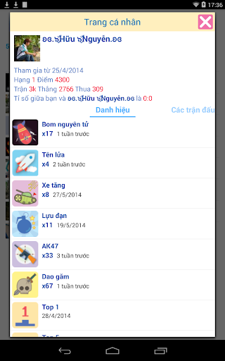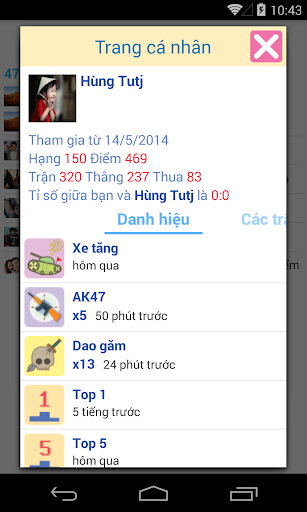 - Xem thành tích cá nhân, thứ hạng, danh hiệu, các trận đấu