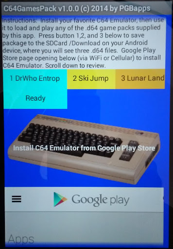 - Also helps you find and install your favorite C64 Emulator from Play Store.