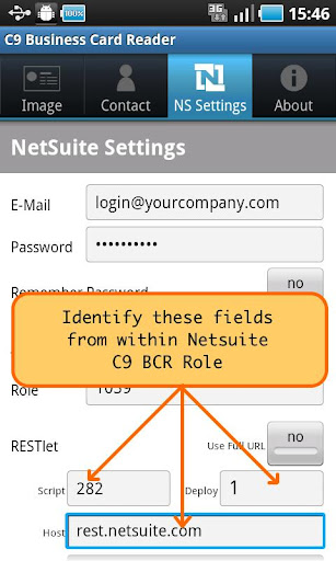 - Instantly image and transfer contacts from a physical business card into Netsuite and/or the local contacts address book.