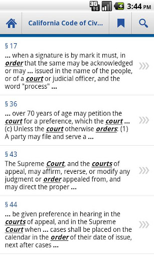California Code of Civil Procedure by Pocket Topics is the only California Code of Civil Procedure reference software you need on your Android device. Designed for law enforcement personnel, lawyers, paralegals or anyone who needs quick access to California's Code of Civil Procedure. Use in in the patrol car or in the court room. All data is stored on your device so you never need an internet connection.