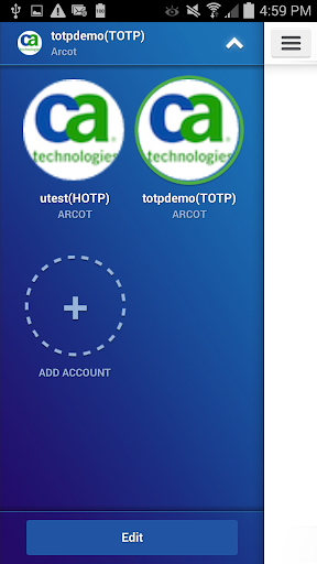 The CA Mobile OTP app is an all-purpose one-time passcode (OTP) generator that provides an extra layer of security when you shop online or access online accounts. With CA Mobile OTP, you use your mobile device to generate a passcode that can be used to verify a MasterCard or Visa electronic payment transaction, or to login to an online account. This app supports EMV standards when generating the passcode for authenticating MasterCard and Visa online payment transactions. CA Mobile OTP also supports HOTP standards for generating one-time passcodes to use when authenticating to Web portals and VPNs.