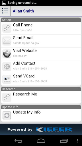 Search and find all Government contacts in the State of California all on your phone! The State Directory lets you search for Government Employees and gives you the ability to call, email, add to contacts, send a Vcard and update or add employee information.