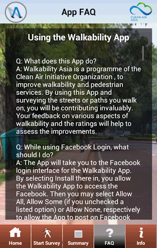 The Walkability App, is a FREE App, which allows you to survey the streets or paths you walk on and contribute invaluably to supporting different initiatives for improvements. So now you can not only enjoy walking, but also contribute with your Survey feedback towards improving the pedestrian infrastructure.
