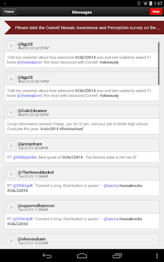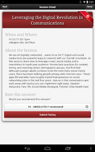 The 2015 Cornell Alumni Leadership Conference will be held in Boston, MA, January 16-18, 2015. This application is for the attendees to communicate with each other throughout the event, view the session schedule, and complete session evaluations.