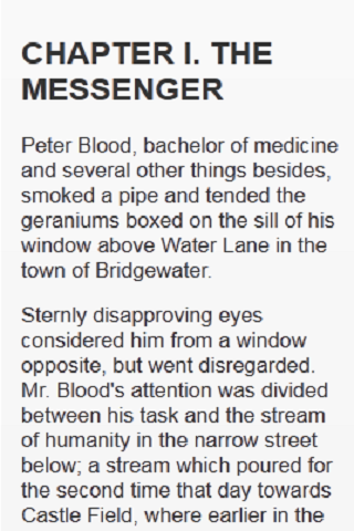 Peter Blood, bachelor of medicine and several other things besides, smoked a pipe and tended the geraniums boxed on the sill of his window above Water Lane in the town of Bridgewater.