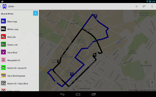 • Real-time bus location information from CATA's website for all routes including the Game Day Buses
