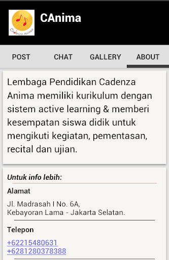 Description: Lembaga Pendidikan Cadenza Anima memiliki kurikulum dengan sistem active learning & memberi kesempatan siswa didik untuk mengikuti kegiatan, pementasan, recital dan ujian.