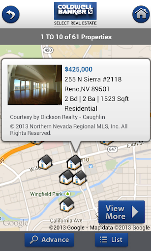 The free CBSelectRE android app provides properties for sale in Northern Nevada and Lake Tahoey.