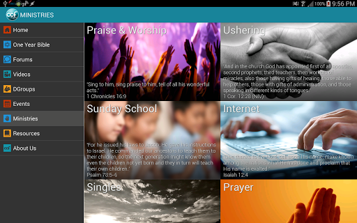 * Ministry list to showcase the list of teams that serves the church and also to encourage participation of members.