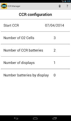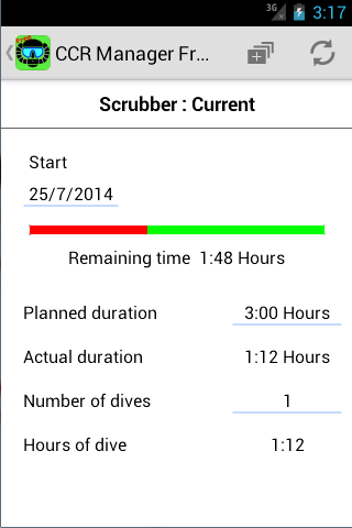 It manages the duration of the scrubber, the O2 cells, the batteries of the rebreather, the displays or the dive computers, as well as the frequency of disinfection of the rebreather. For that purpose, it only requests the date and duration of the dives, CCR Manager does the rest.