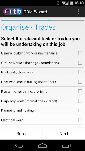 CDM Wizard will help you to plan and organise your construction job and work together with others involved to make sure that the work is carried out without risks to health and safety. It will also help you to comply with the Construction (Design and Management) Regulations 2015 (CDM 2015); applicable across Great Britain.