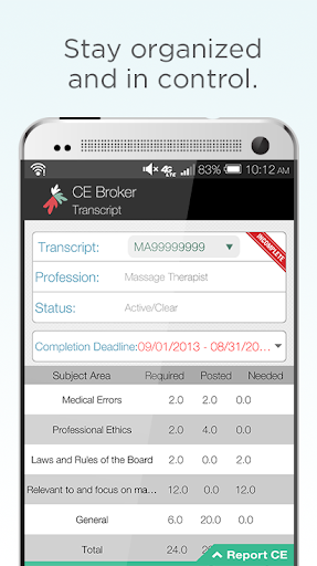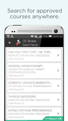 As a licensed healthcare professional in Florida, the CE Broker Android app lets you quickly and easily view your progress toward your continuing education requirements and quickly report additional continuing education hours. You can quickly verify if you've completed your continuing education requirements for the current license cycle and search for continuing education courses to meet your needs. Now you can finally have peace of mind with one streamlined electronic CE portfolio on your Android phone.