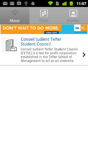 Instant access to campus events, important dates, phone numbers and news on your Android provided by the University of Ottawa Telfer School of Management and Conseil Étudient Telfer Student Council, and sponsored by CGA Ontario.