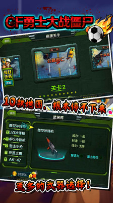 《CF勇士大战僵尸》是一款刺激的动作游戏,在史诗般的背景音乐中,感受枪弹和血浆的交响曲!