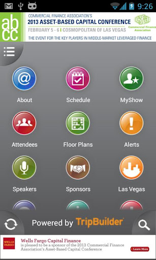 TripBuilder EventMobile™ is the official mobile application for the 2013 Commercial Finance Association’s Conferences taking place in Las Vegas, Los Angeles, New Orleans and Miami.