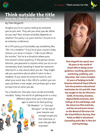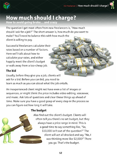 In every issue, we talk about topics common to all CG and VFX freelancers: finding work, tools for productivity, dealing with clients, portfolios, legal agreements, how much to charge, and more! Everything you need to be a success as a CG freelancer.