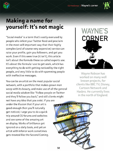In CG Freelancer magazine you'll meet seasoned pros and get tips, tools and advice you won't find anywhere else. Learn about both the art and business of CG freelancing with this information-packed quarterly magazine.