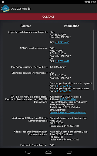CGS GO Mobile was created by CGS Administrators, LLC, a DME Medicare Administrative Contractor for the Centers for Medicare & Medicaid services (CMS). The app was designed for Jurisdiction C Durable Medical Equipment suppliers and their field service and marketing representatives. Information available includes “Dear Physician Letters”, access to MR WIZARD, a specialized portal which provides detailed information on CGS claims with full or partial medical review denials, and CGS operational contact information. Users may also share information from CGS GO Mobile via email.