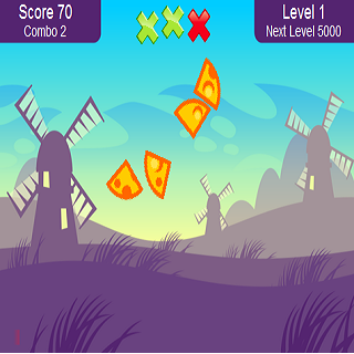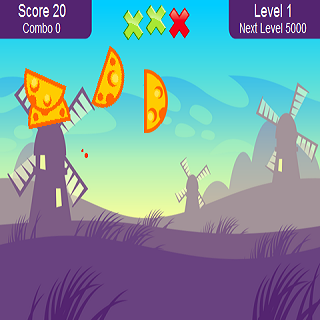 Chop and slice the cheese rolls as they pop up around the screen. Do multiple slices to chop them into smaller pieces, and try to get a super-big combo. Avoid the bombs or you’ll loose points.