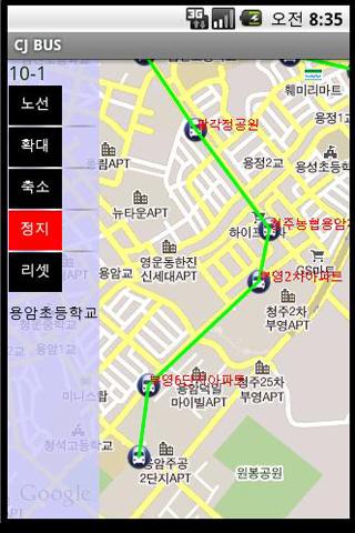 CJ Bus helps travelers to find the correct bus route in Cheong-Ju City.