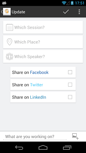 * Status Update - a quick way to share photos, comments, where you are, and which session you’re attending