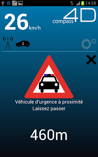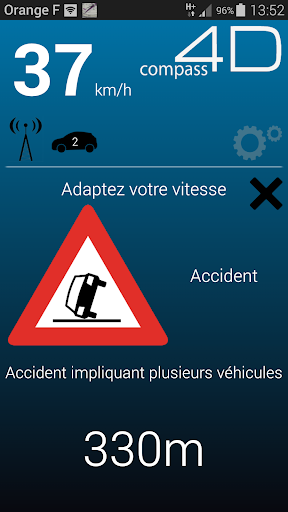 When an emergency vehicle belonging to the fire department from Bordeaux and equipped with COMPASS4D approaches and is on intervention it will send an alert signal which can be received by another vehicle equipped by COMPASS4D. An alert message saying that an emergency vehicle is approaching will appear on the smartphone.