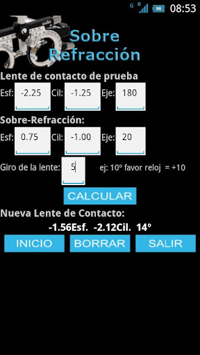- "Sobre-refracción" calcula la potencia de la lente de contacto final que debes probar en una adaptación, partiendo de la graduación inicial y la sobre-refracción obtenida.