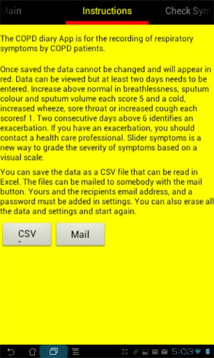15 years to record daily peak expiratory flow rate and respiratory symptoms, with the aim of identifying exacerbations of COPD. This work has received international recognition but patients may retrospectively fill in the diary cards. I have developed this App because commerical tele-monitoring systems are very expensive and I thought there should be a cheaper way.