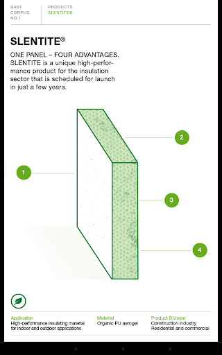 CORPUS also affords a glimpse inside the labs of the world's biggest chemical company. The crucial role played by research is demonstrated by the example of Slentite, the new high-performance insulating material.