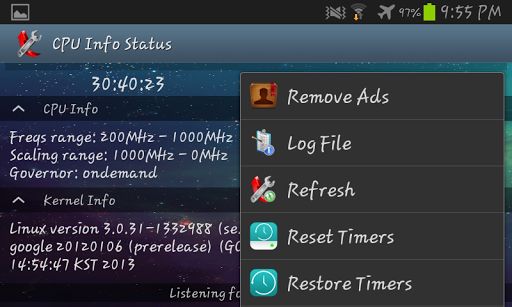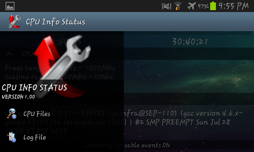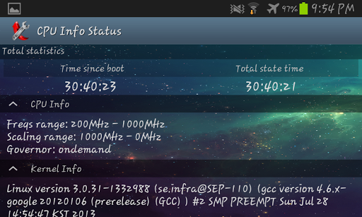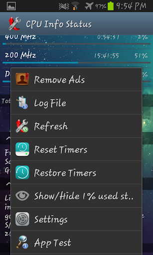 如果您遇到了一些问题,你想摆脱它,你可以实现从设置的详细选项,这样应用程序将产生的所有它的操作的日志文件。然后,当问题发生时,你可以在gshark550@gmail.com给我存储在大容量存储包含比默认的Android错误报告的程序更加信息的“CpuInfoStates.log”文件。这样它会更容易和更快解决的bug我:)