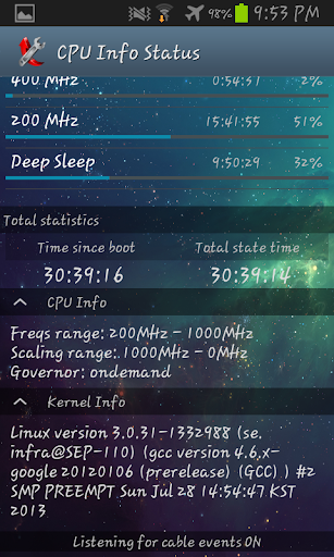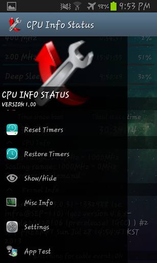 CPU信息状态是一个不错的应用程序,以显示CPU花费在每个频率状态的时间。这可以在电池诊断问题或调整您的超频设置一个有用的工具。这也显示当前的内核信息和其他一些CPU信息。