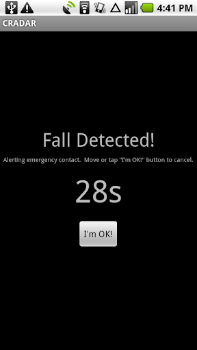 CRADAR (CRAsh Detection And Response) is a man-down application that uses the accelerometer to detect a fall and sends a text message alert to a specified emergency contact, using the GPS to include a link to a map with your exact location. Great for cyclists, hikers, bikers, and anyone traveling alone.