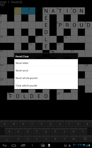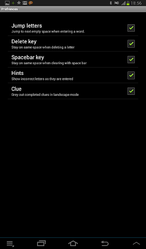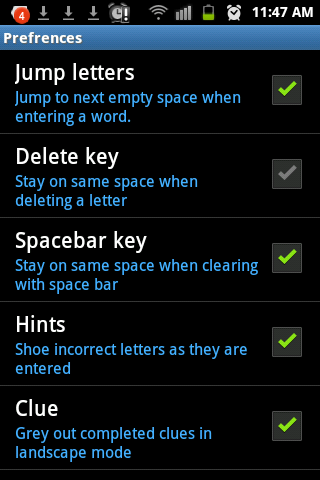 - Preferences (highlight mistakes, grey out completed clues, jump letters, etc)