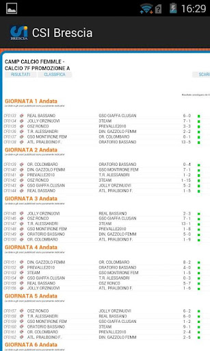 Con CSI Brescia potrai visualizzare calendari, risultati e classifiche aggiornati di tutti i 75 campionati di calcio (giovanile, a 5, a 7 e a 11), pallavolo (under e over) e basket disputati nel CSI Brescia!