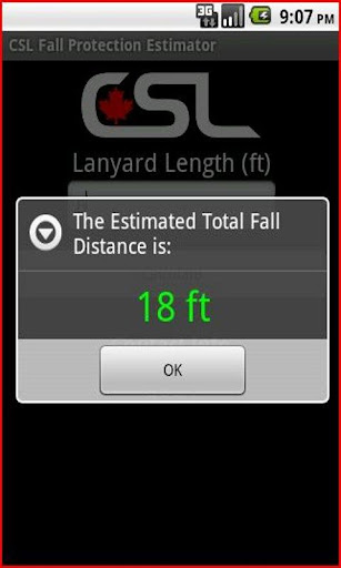 This application is intended to assist workers in estimating their total fall distance of the fall arrest system they are using. A fall arrest system is only effective if it stops a workers fall before the ground or first strike-able object. This application is only an estimator and not an exact measurement. This application calculation is based on a 6 foot tall 200 lbs worker with an above head 5000lbs rated anchor point. This app has a 2.5 foot safety margin added to the total fall distance calculation.