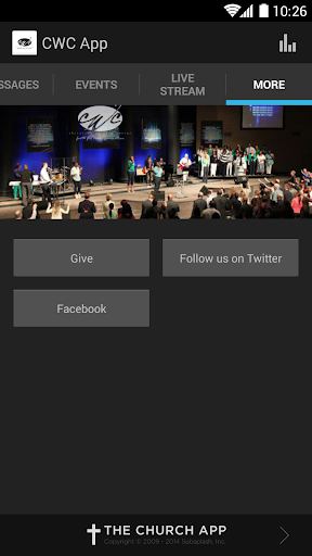 The Christian Worship Center app was developed with the Subsplash App Platform.