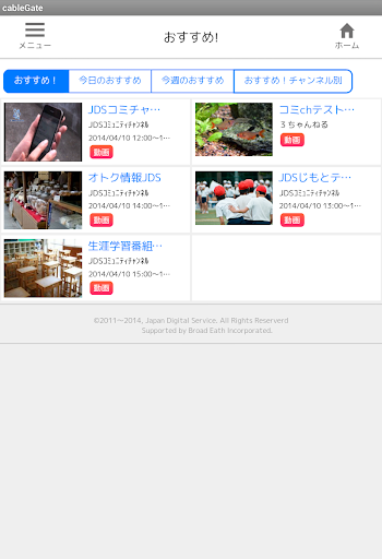 全国のケーブルテレビ局のおすすめ番組と番組表をいつでもチェックできるCableGateのAndroidアプリです。