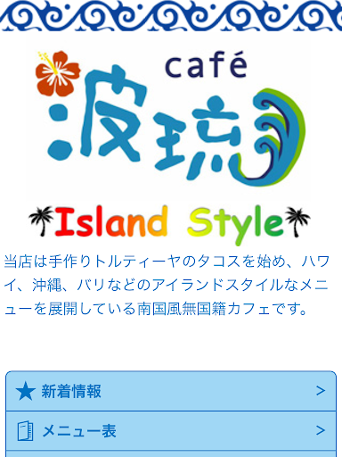 手作りトルティーヤのタコスを始め、ハワイ、沖縄、バリなどのアイランドスタイルなメニューを展開している南国風無国籍カフェ 公式アプリ。