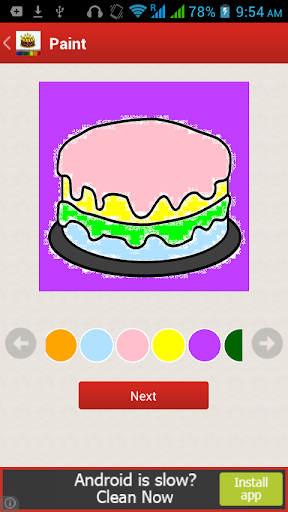 This Cake Painting app will allow your little kids to color various cake pictures and have fun. Your child will be able to play with many colors and create excellent and colorful cake images that you can share on various platforms and show the creativity that you little one has made. This cake painting app can also help you teach your child about various colors and what each color denotes along with teaching your child about the cake that he or she is coloring . To add to the fun there is also a refreshing music added to the app that will make it a better experience to paint and color cakes. You can chose from a list of images that your child wants to paint,chocolate cake, strawberry cake, pineapple cake, butterscotch cake, simple cake, sponge cake, carrot cake and many more. Thereafter be proud on what your child has come up with.