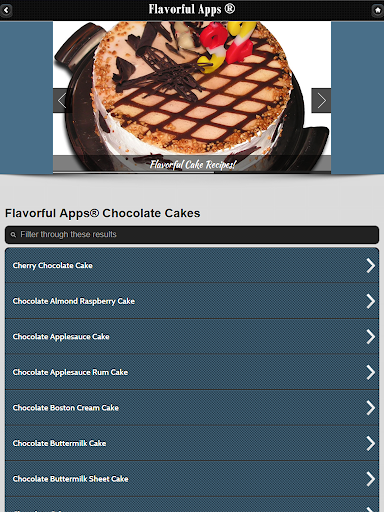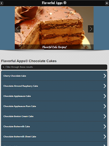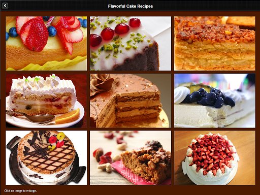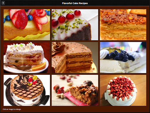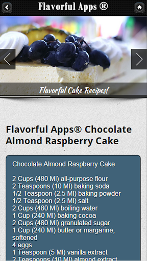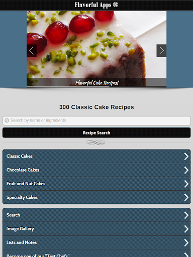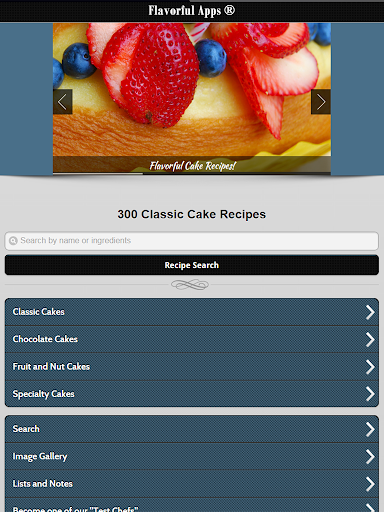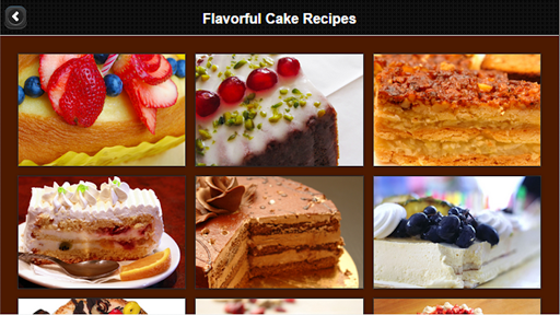 This application offers over 300 cake recipes that are all categorized within the main menu for easy navigation and access: