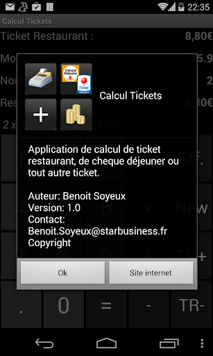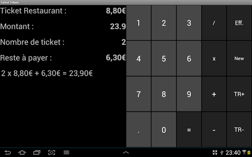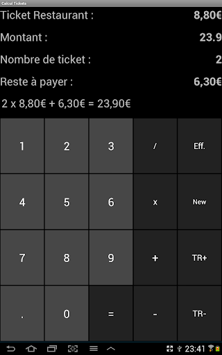 Application permettant simplement de connaitre le nombre de ticket restaurant, de chèque déjeuner ou tout autres ticket ou coupon à donner pour payer votre note.