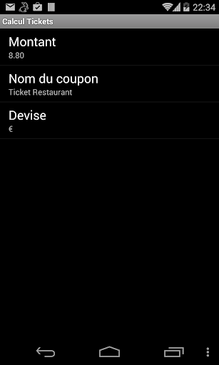 Bien évidemment, le montant du ticket restaurant ou du chèque déjeuner est enregistré dans les préférences de l'application. Donc pas besoin de les ressaisir à chaque utilisation.