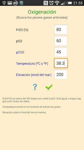 - Pantalla de oxigenación para poner los peores gases. La calculadora determinará el gradiente alvéolo arterial si es necesario.