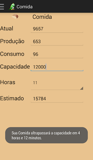 Através dela poderá inserir seus valores de recursos e saber quanto terá após um determinado período de tempo, indicará se seus recursos ultrapassarão ou não a capacidade, e também poderá ver se sua comida não se tornará negativa.