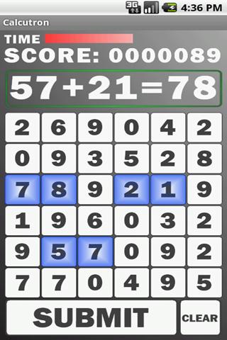 In timed mode you are given 90 seconds to score as many points as you can with new numbers being added after every submission. In clear mode you are given 45 seconds to clear out as much of the board as possible, with all points doubled if you can completely clear the board.